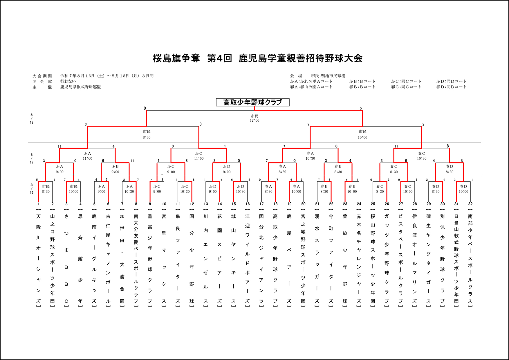 ▽【途中経過】桜島旗争奪 第4回 鹿児島学童親善招待野球大会